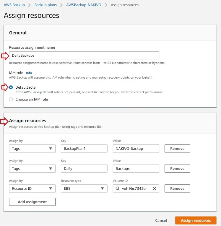 - Click Assign resources to complete the configuration process. After that, the backup job should run automatically. You can go to the AWS Backup dashboard to see the current status of your backup jobs and verify that they are working as planned.