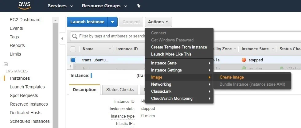 After the AMI has been successfully created, it can then be used to create a new AWS EC2 instance, which will be an exact copy of the original instance. For this purpose, simply go to the Instances section, click Launch Instance, select the AMI you have created in the My AMIs section, and follow the prompts to finish the instance creation.